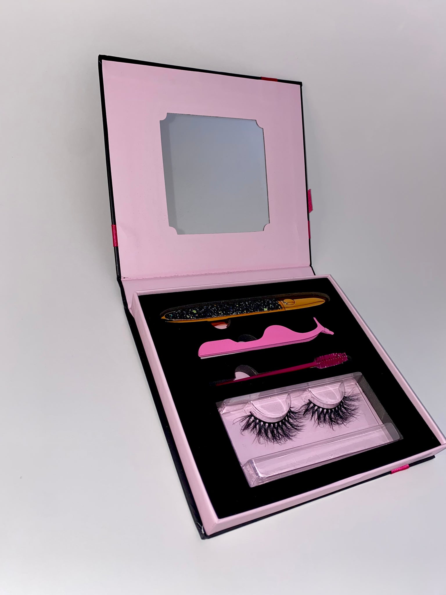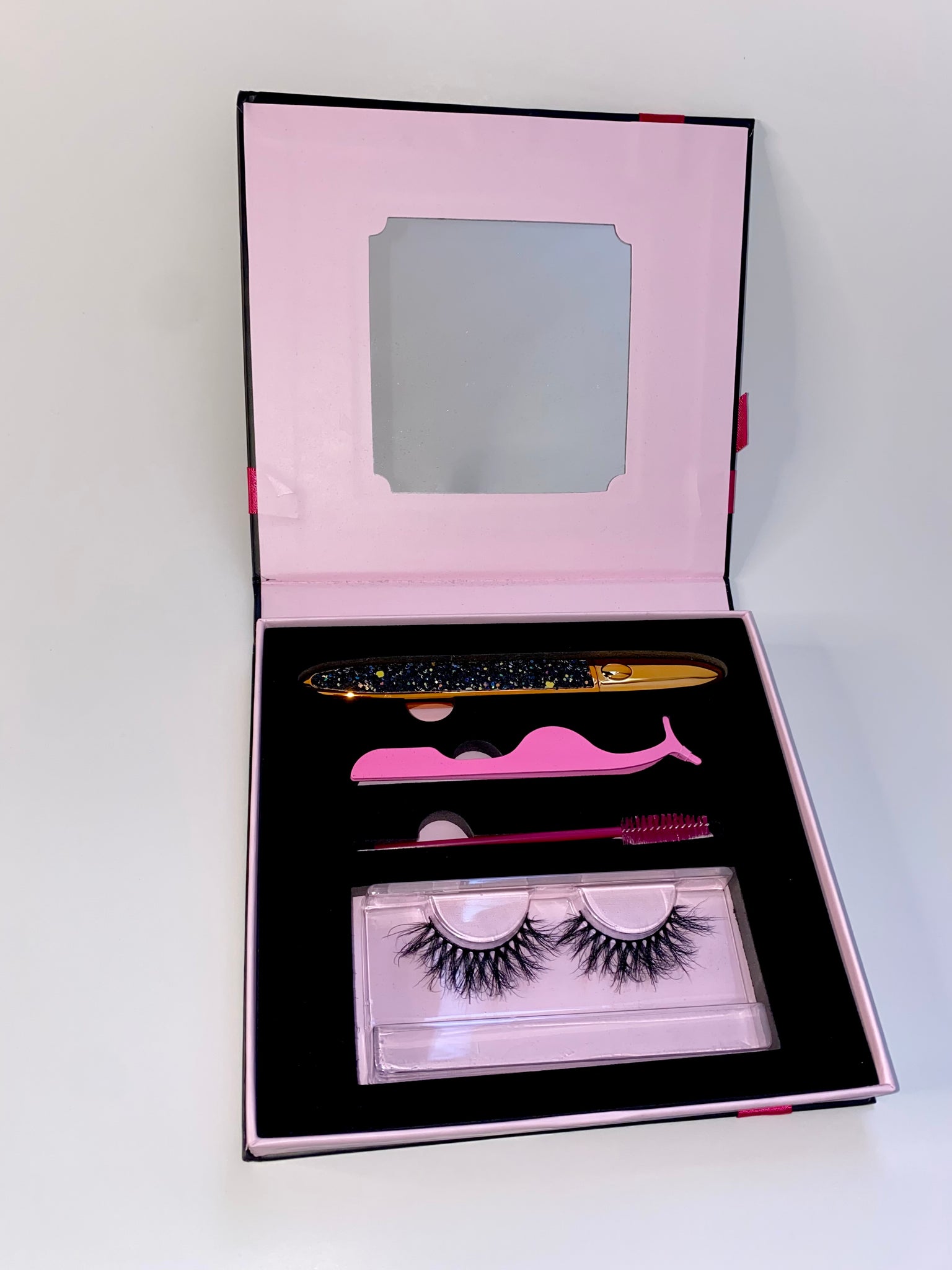 20mm Wispy lashes, lash brush, lash tweezers, lash glue and mirror
